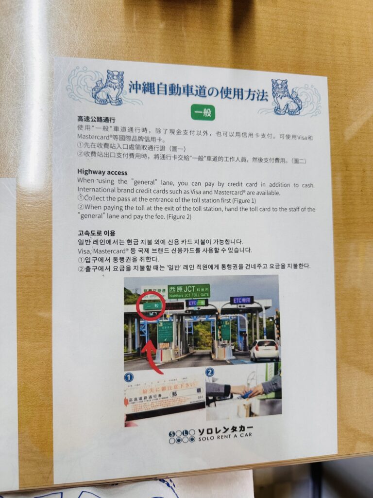 Para alquilar un auto en Okinawa (y en todo Japón) vas a necesitar un permiso de conducir internacional. No lo olvides porque sin eso no te entregan el vehículo.