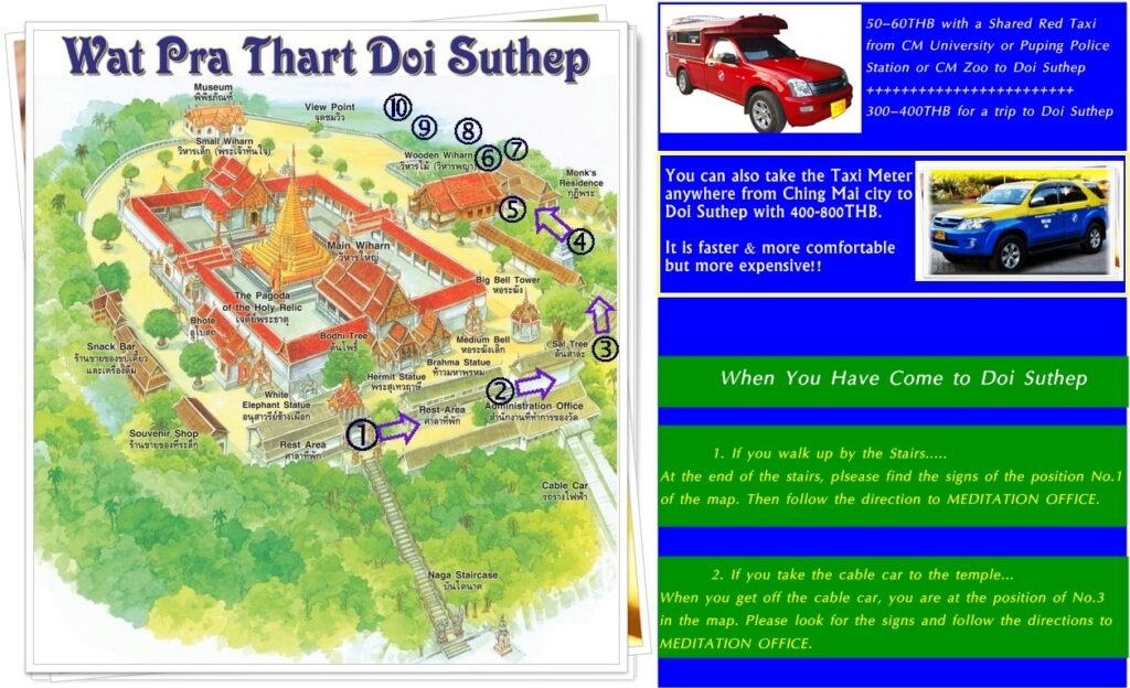 Si decides realizar el retiro de meditación en el Wat Doi Suthep, procurá reservar tus fechas con una cierta anticipación, debido a que ellos te brindan cuartos individuales, y puede suceder que estén todos ocupados, en temporada alta.
