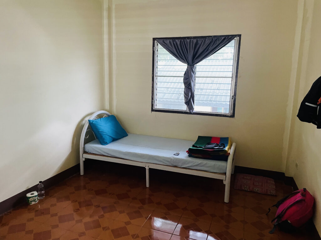 La habitación sería, aproximadamente de 2,5 x 2,5 metros. En el cuarto, tan solo había una cama, unas frazadas, un perchero, dos ventanas, un enchufe y un zabutón. El cuarto estaba mucho mejor de lo que me imaginaba y se lo notaba limpio.