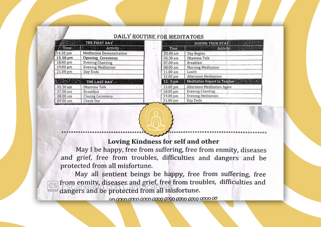 Luego de la pandemia del 2020, comencé a dar mis primeros pasos en meditación. Y por esta razón, me dieron ganas de aprovechar mi viaje a Tailandia para hacer un retiro de meditación Vipassana.