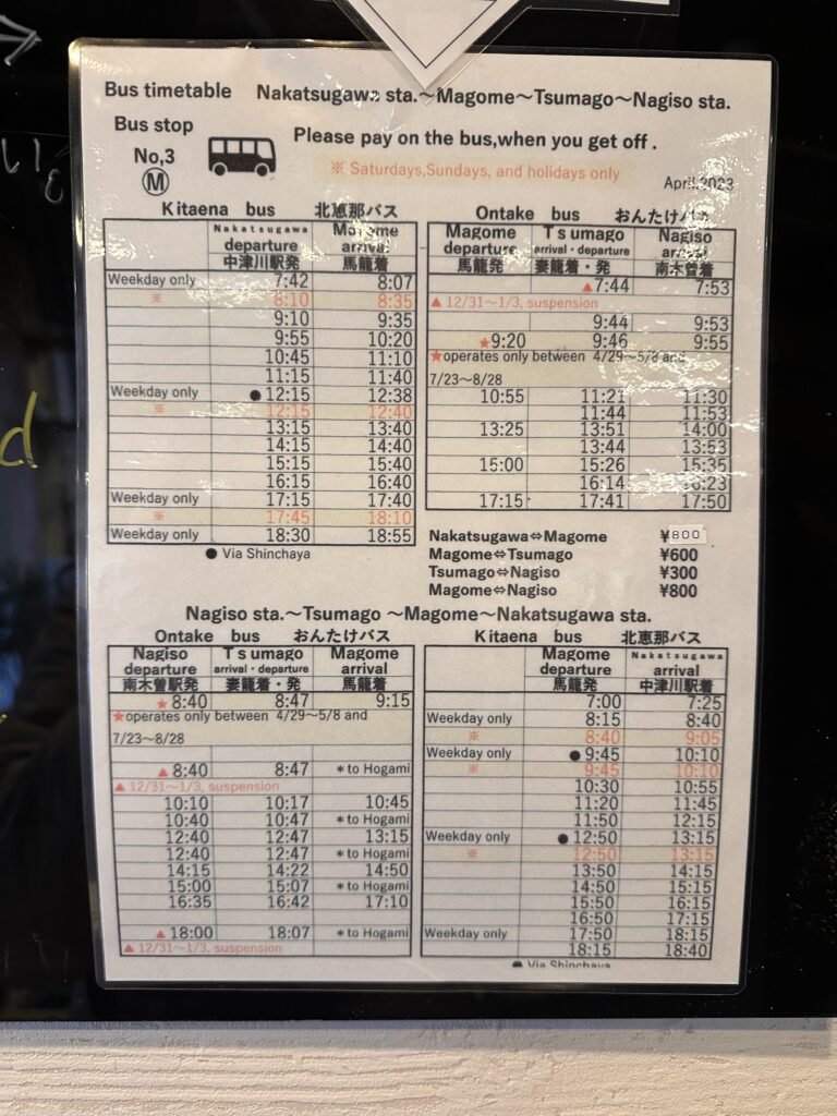 El trayecto en tren duró alrededor de dos horas, y desde la estación de Nakatsugawa se puede tomar un bus local hasta Magome, que es donde comienza la caminata.